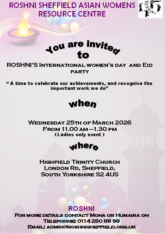You are invited to Roshni International Women's Day and Eid party 2026